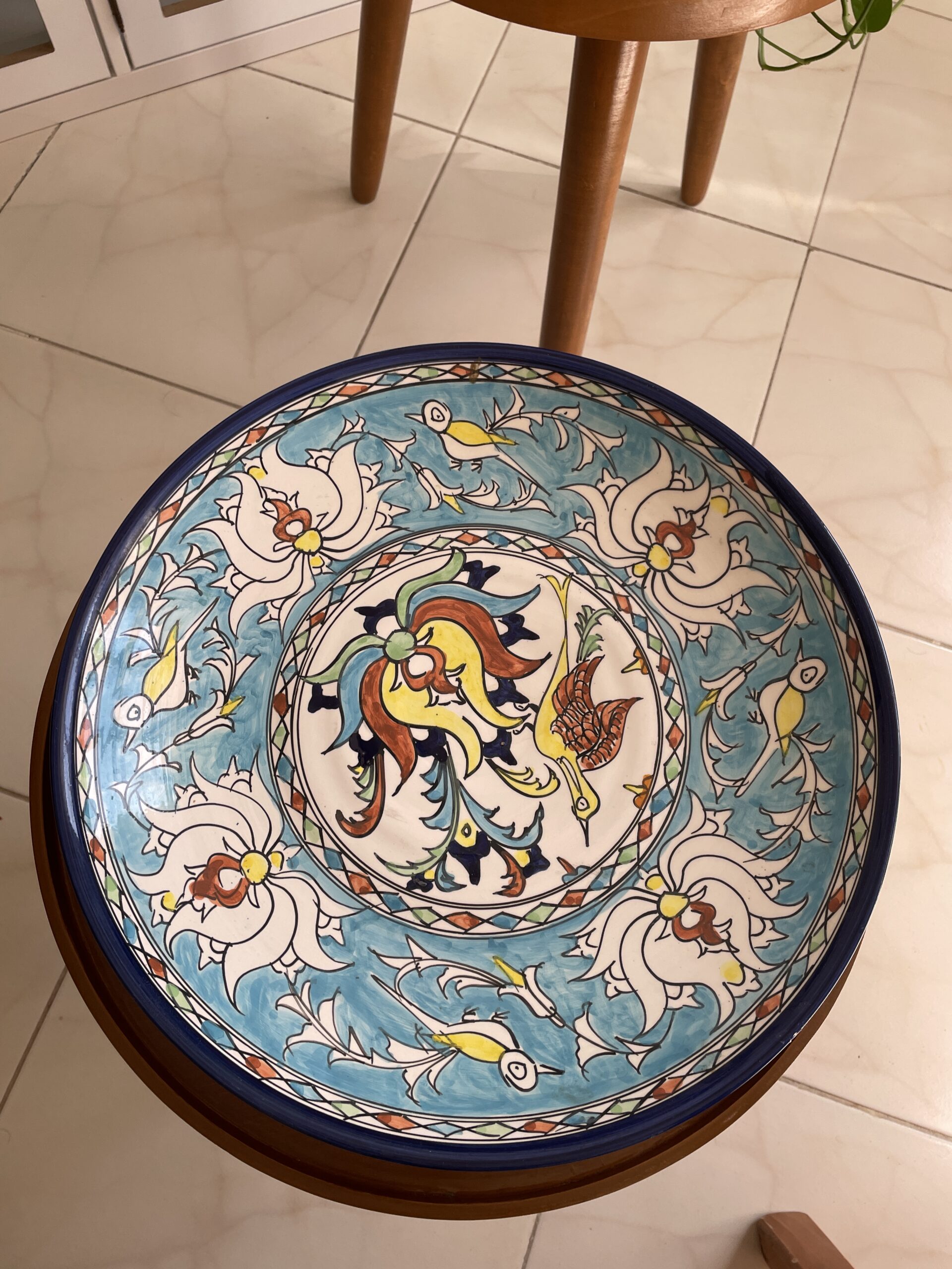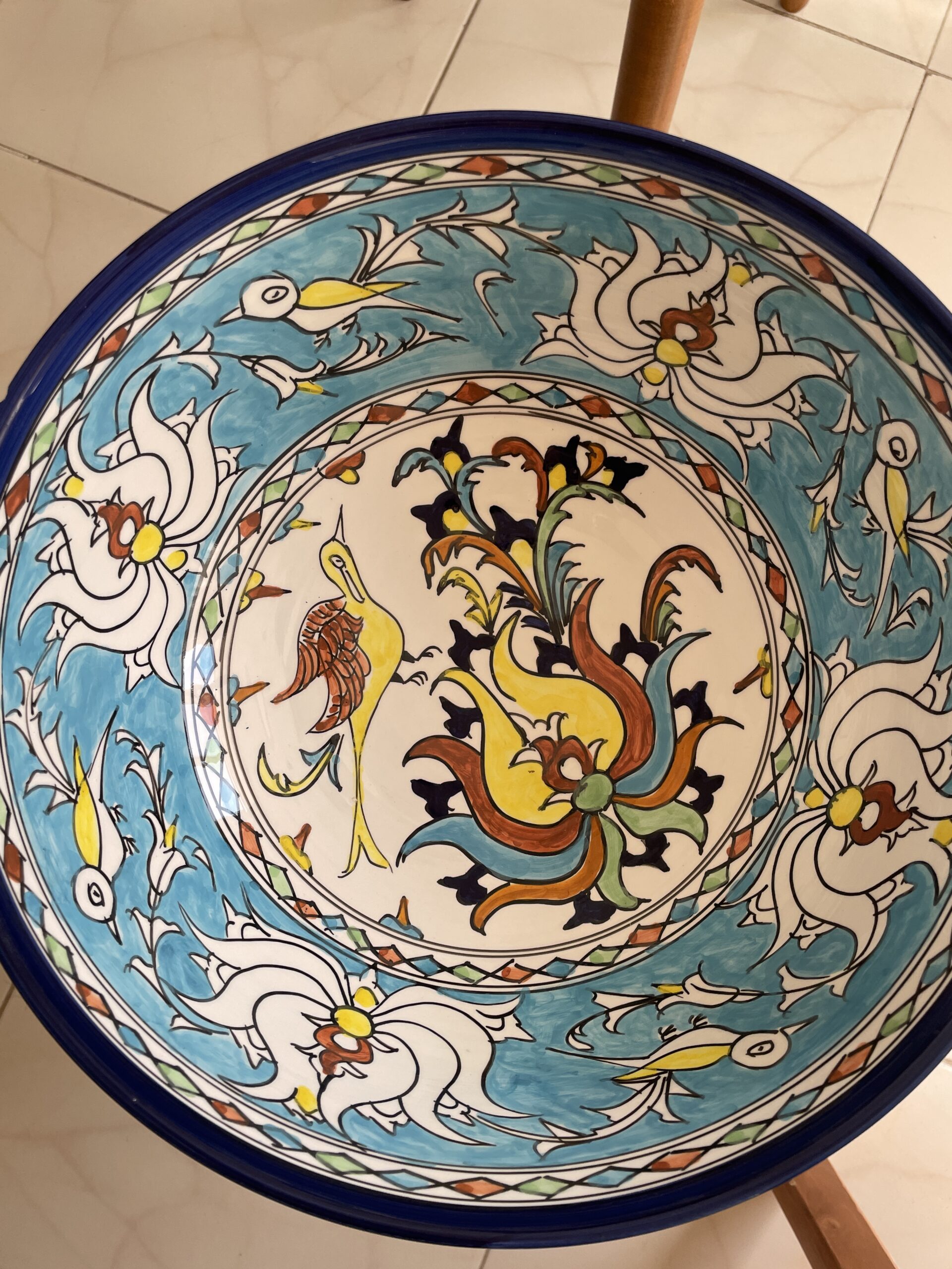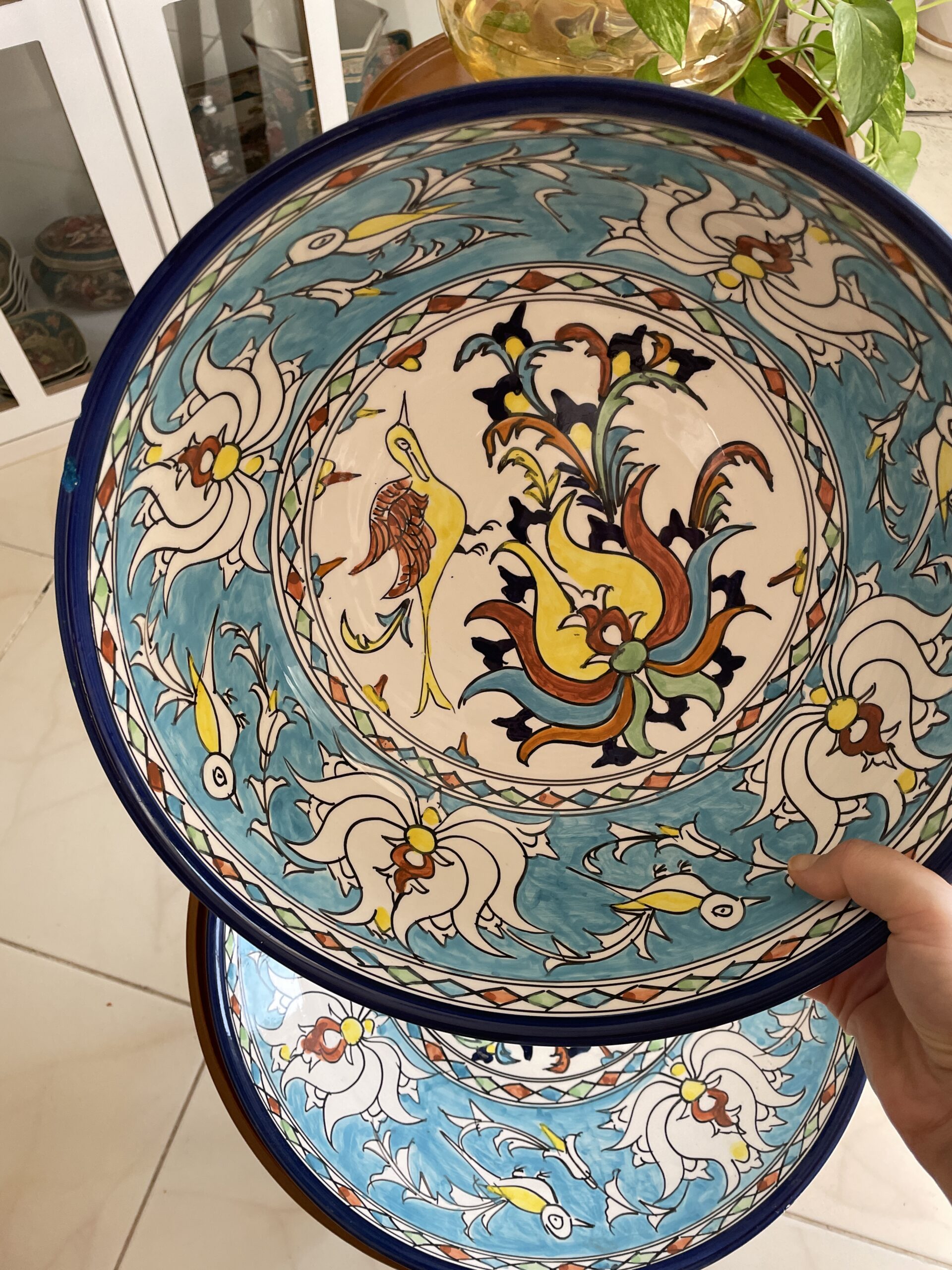 قاب و قدح نقاشی شده کار دست بسیار بسیار قدیمی و مهر دار اب نزده (لب پری جزعی) بزرگترین سایز قاب و قدح انتیک